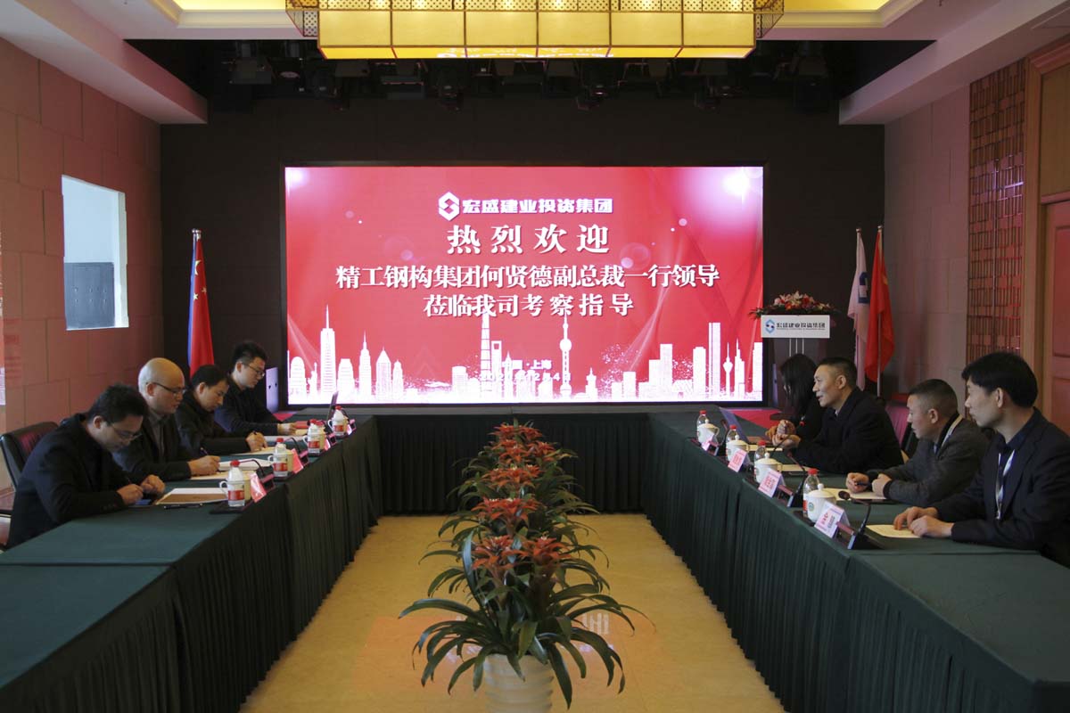 12月4日,長江精工鋼構(gòu)集團副總裁何賢德一行到宏盛建業(yè)上??偛靠疾旖涣?,集團董事長周金虎陪同座談。雙方就攜手助推裝配式產(chǎn)業(yè)發(fā)展達成合作意向,共商未來發(fā)展布局規(guī)劃。