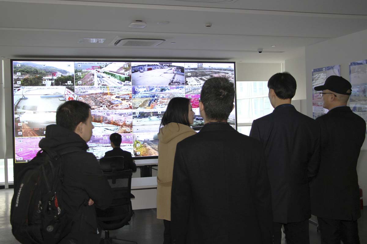 △在生產(chǎn)指揮中心觀看在建項目現(xiàn)場情況