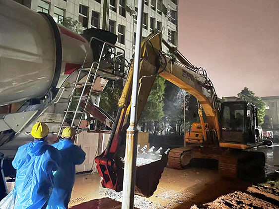 當日,我們來到了上饒市中醫(yī)院圍墻砌筑工程的施工現(xiàn)場。挖掘機、泵車、攪拌車……這些平日里聽起來冷冰冰的詞匯,在上饒近日驟降的寒冷氣溫中顯得格外“凍人”。天空中斷斷續(xù)續(xù)飄著雨,管理員和工人們身披雨衣,正在為按要求、保質量盡快完成砌筑工作而不舍晝夜,緊張的忙碌著。