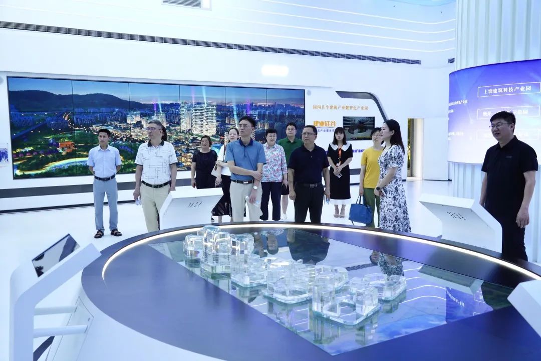 2022年7月9日上午江西省建設(shè)職業(yè)技術(shù)學(xué)院黨委書記黎洪陽、院長李永剛、副院長夏潔雯、黨政辦主任廖凱等一行12人蒞臨上饒市建筑科技產(chǎn)業(yè)園——建業(yè)硅谷參觀。上饒市建筑科技產(chǎn)業(yè)管理有限公司總經(jīng)理何德洪熱情接待,常務(wù)副總程文龍、副總經(jīng)理趙慧及相關(guān)部門負(fù)責(zé)人陪同參觀交流。