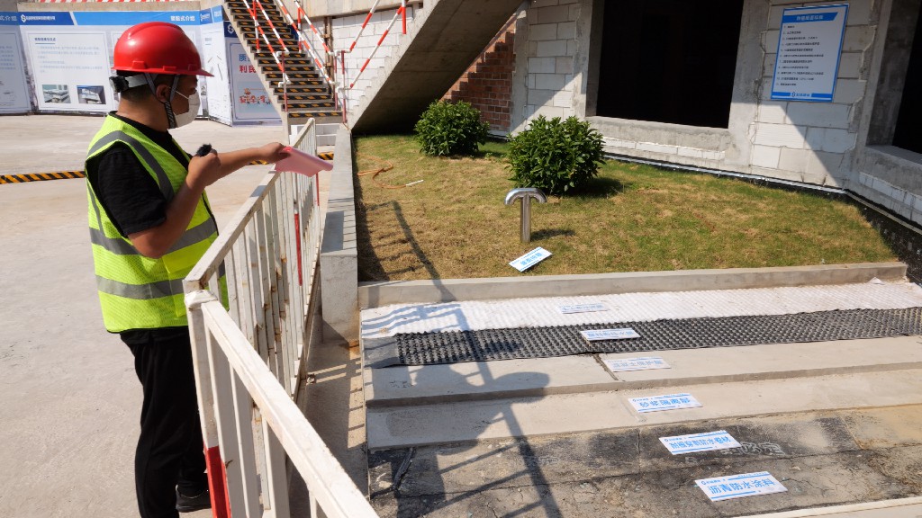 隨后,由引導(dǎo)員以在線直播的形式帶領(lǐng)大家參觀本次觀摩會(huì)現(xiàn)場(chǎng)。觀摩線路沿途布設(shè)黨建長(zhǎng)廊、標(biāo)準(zhǔn)養(yǎng)護(hù)室、智慧工地展區(qū)、實(shí)體樣板區(qū)、圓柱工藝展區(qū)、施工機(jī)具及新工藝材料展示等。觀摩過(guò)程中,引導(dǎo)員為大家詳細(xì)介紹了贛州經(jīng)濟(jì)技術(shù)開(kāi)發(fā)區(qū)文化藝術(shù)中心(A、C地塊)建設(shè)項(xiàng)目中的亮點(diǎn)技術(shù):弧形木模、BIM管綜調(diào)整、弧形梁GPS坐標(biāo)定點(diǎn)放樣、種植層面防水施工……