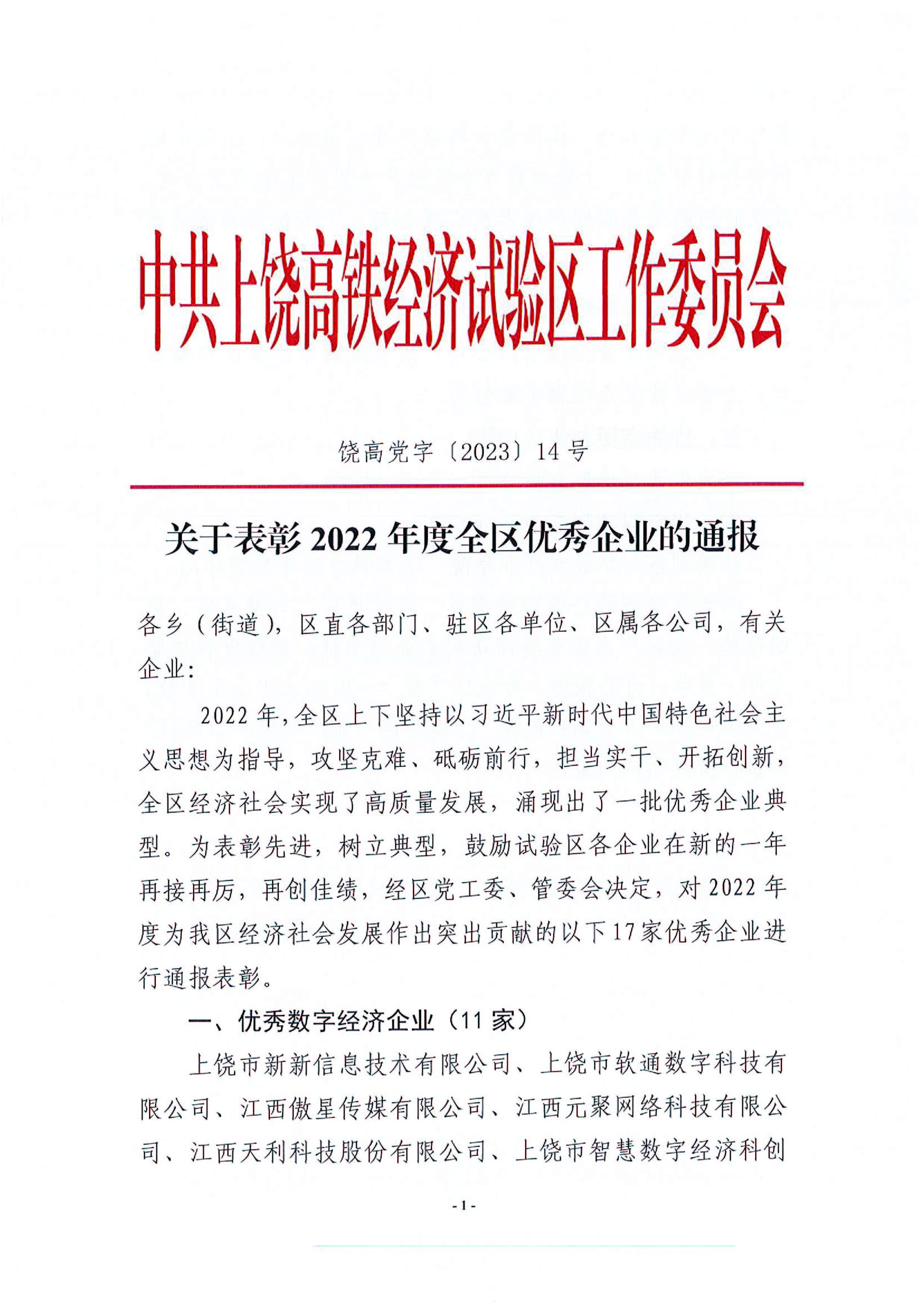 近日,中共上饒高鐵經(jīng)濟(jì)試驗(yàn)區(qū)工作委員會(huì)饒高黨字〔2023〕14號(hào)文件中公布了關(guān)于表彰2022年度全區(qū)優(yōu)秀企業(yè)的通報(bào)。宏盛建業(yè)投資集團(tuán)有限公司獲評(píng)“2022年度中共上饒高鐵經(jīng)濟(jì)試驗(yàn)區(qū)優(yōu)秀總部經(jīng)濟(jì)企業(yè)”。