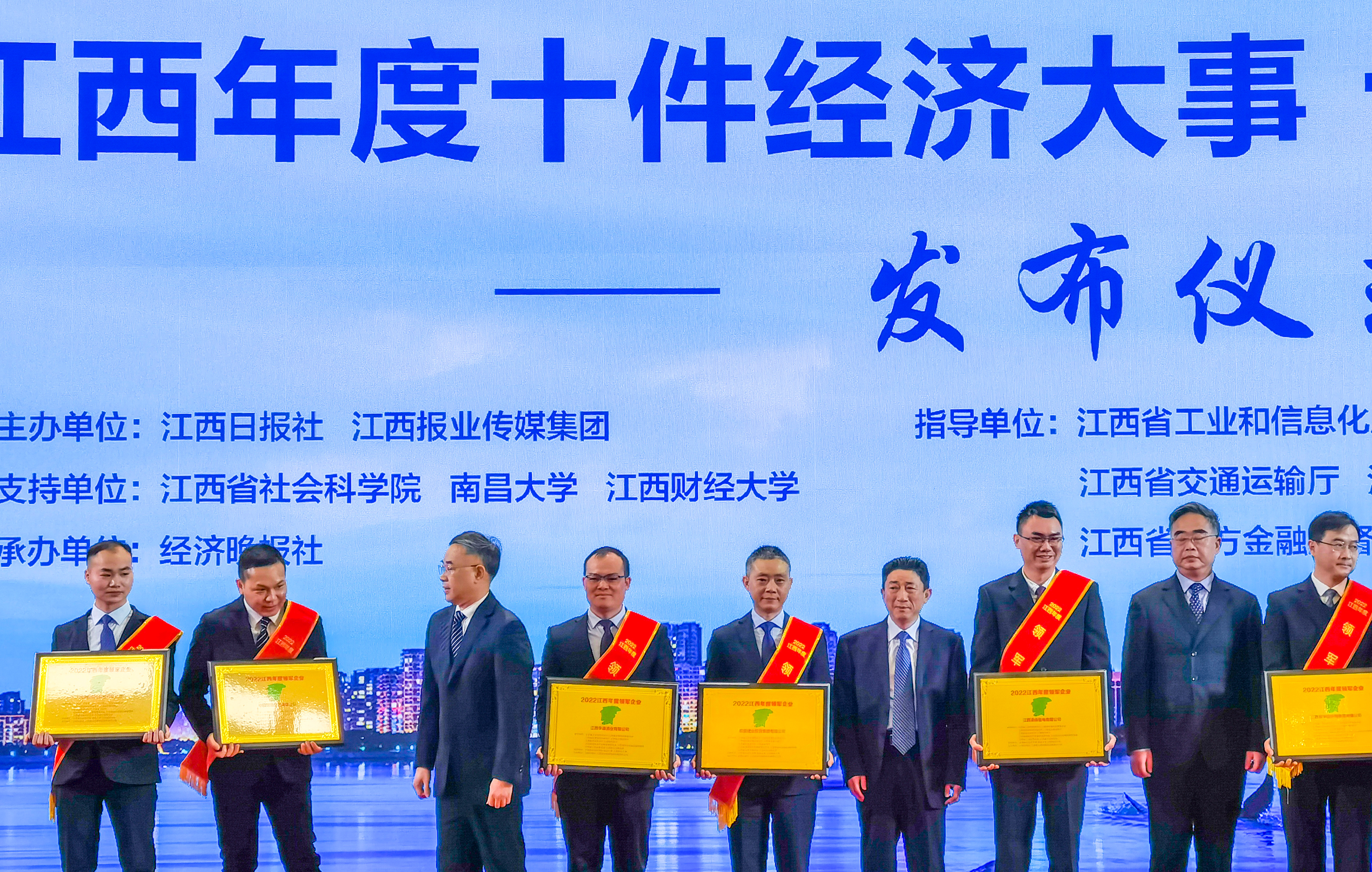 “2022江西年度經(jīng)濟大事、經(jīng)濟人物、領(lǐng)軍企業(yè)”評選活動由江西日報社、江西報業(yè)傳媒集團主辦,省工業(yè)和信息化廳牽頭指導,省發(fā)展和改革委員會、省住房和城鄉(xiāng)建設(shè)廳、省交通運輸廳、省農(nóng)業(yè)農(nóng)村廳、省商務廳、省國有資產(chǎn)監(jiān)督管理委員會、省地方金融監(jiān)督管理局、省工商業(yè)聯(lián)合會、省企業(yè)聯(lián)合會(省企業(yè)家協(xié)會)共同指導,省社科院、南昌大學、江西財經(jīng)大學支持舉辦,經(jīng)濟晚報社承辦。
