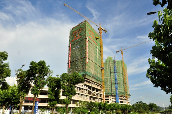 8月16日凌晨5點,隨著最后一平的板面混凝土澆筑被抹平,中國(上饒)建筑科技產(chǎn)業(yè)園總部經(jīng)濟園主體結(jié)構(gòu)雙子樓迎來封頂大吉。自2017年6月29日項目全面開工截至雙子樓喜封金頂,項目累計安全施工778天。 在上饒市鳳凰大道與站前大道交匯處,高高聳立的23層雙子樓在陽光下亭亭玉立,如兩艘巨輪正揚帆起航。