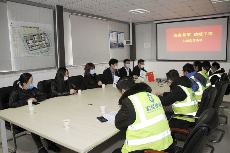 1月28日,宏盛建業(yè)投資集團(tuán)監(jiān)事長成承,人力資源中心總經(jīng)理程晶,集團(tuán)黨支部副書記、董事會(huì)辦公室主任金慧等中高管、黨員代表一行,來到上海醫(yī)都醫(yī)院項(xiàng)目工地現(xiàn)場(chǎng),親切慰問年節(jié)期間留守項(xiàng)目工地就地過年的集團(tuán)員工,把集團(tuán)精心準(zhǔn)備的防疫物資、生活用品送到大家手上,把集團(tuán)關(guān)懷、祝福送到項(xiàng)目工地。