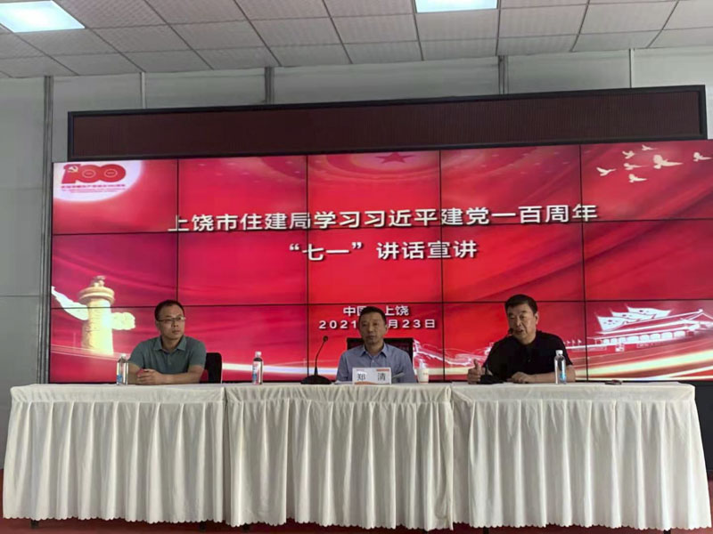 8月23日上午,秋高氣爽,上饒市住建局黨組書記、局長(zhǎng)鄭清在住建局黨政辦主任余道福陪同下,深入上饒市建筑科技產(chǎn)業(yè)園(建業(yè)硅谷),宣講總書記“七一”在慶祝中國(guó)共產(chǎn)黨成立一百周年大會(huì)上的重要講話精神。鄭清同志的宣講提綱挈領(lǐng)、簡(jiǎn)明扼要、旁征博引、深入淺出,贏得了聽眾陣陣掌聲。大家表示,聽了鄭局長(zhǎng)的宣講,對(duì)總書記的“七一”重要講話精神有了更加全面深刻的理解,對(duì)指導(dǎo)企業(yè)今后發(fā)展和提升員工素質(zhì)做好本職工作具有重要意義。