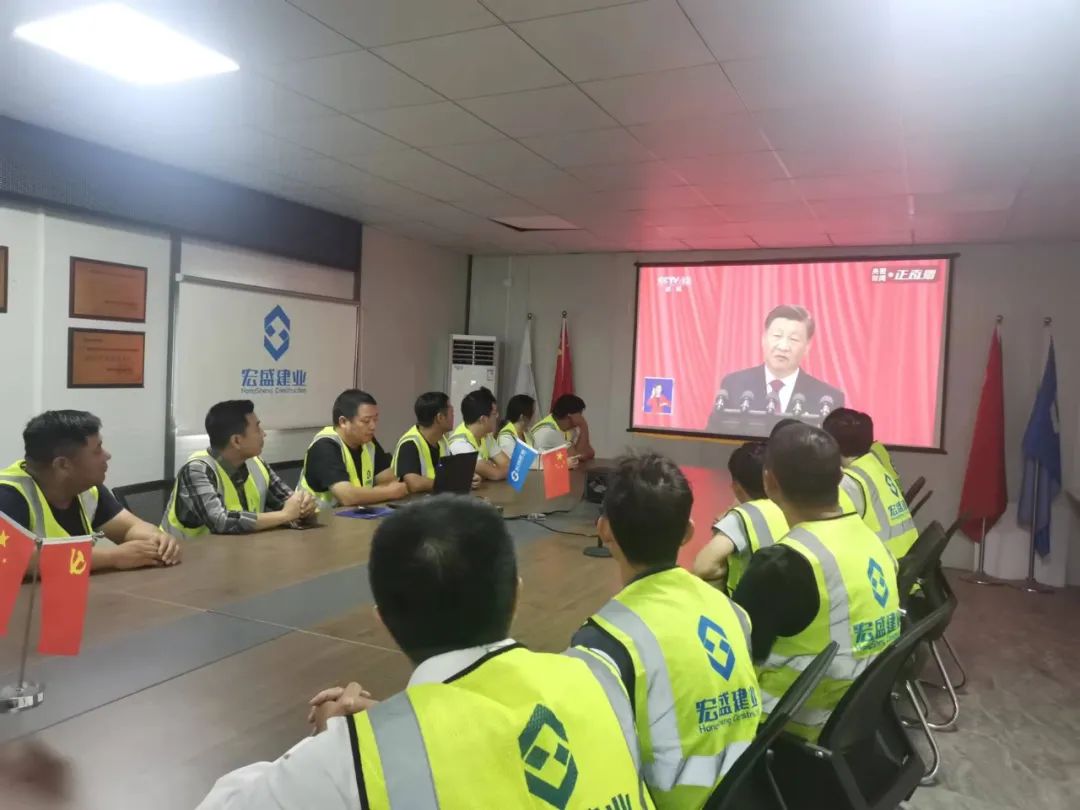 10月16日9:30,在中共宏盛建業(yè)投資集團(tuán)有限公司支部委員會的號召下,集團(tuán)總部及各分子公司、上饒中心血站項目部、贛州文化藝術(shù)中心項目部的黨員同志、發(fā)展對象、積極分子、入黨申請人代表著裝整齊,收看黨的二十大開幕盛況。10點整,隨著屏幕里國歌聲響起,同志們紛紛起立奏唱國歌,并認(rèn)真聆聽習(xí)近平總書記在大會上的報告。