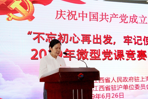 江西省政府駐上海辦事處副主任、江西駐滬單位黨委書記張雪萍主持了下午“不忘初心再出發(fā) 牢記使命開新局”主題微黨課競賽活動決賽。黨委下屬15個支部代表參加講課比賽。在各支部課賽同志情深如炙的演說聲中,大賽評出了決賽的一、二、三等獎和優(yōu)秀獎。